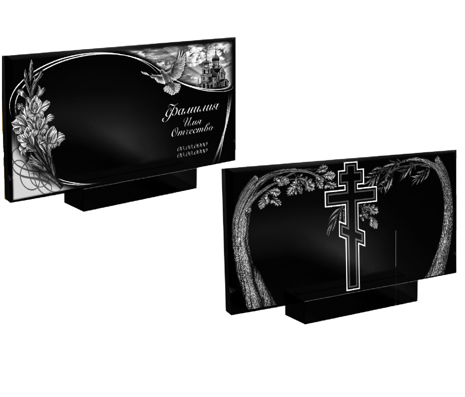 В цену входит: стела, подставка, цветник, портрет метрики, крест, цветы, эпитафия до 30 знаков.