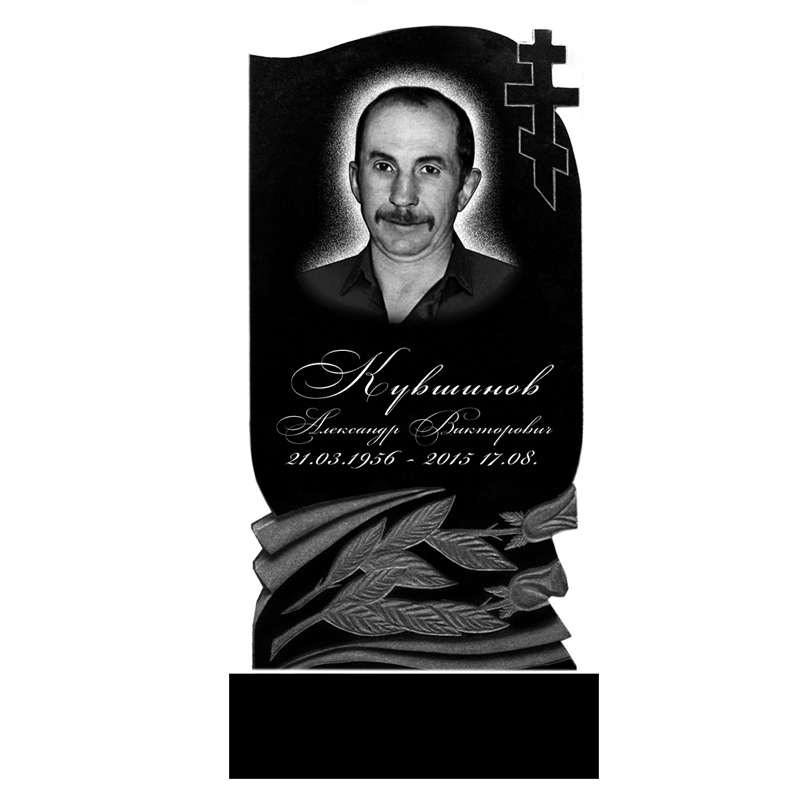 В цену входит: стела, подставка, цветник, портрет метрики, крест, цветы, эпитафия до 30 знаков.