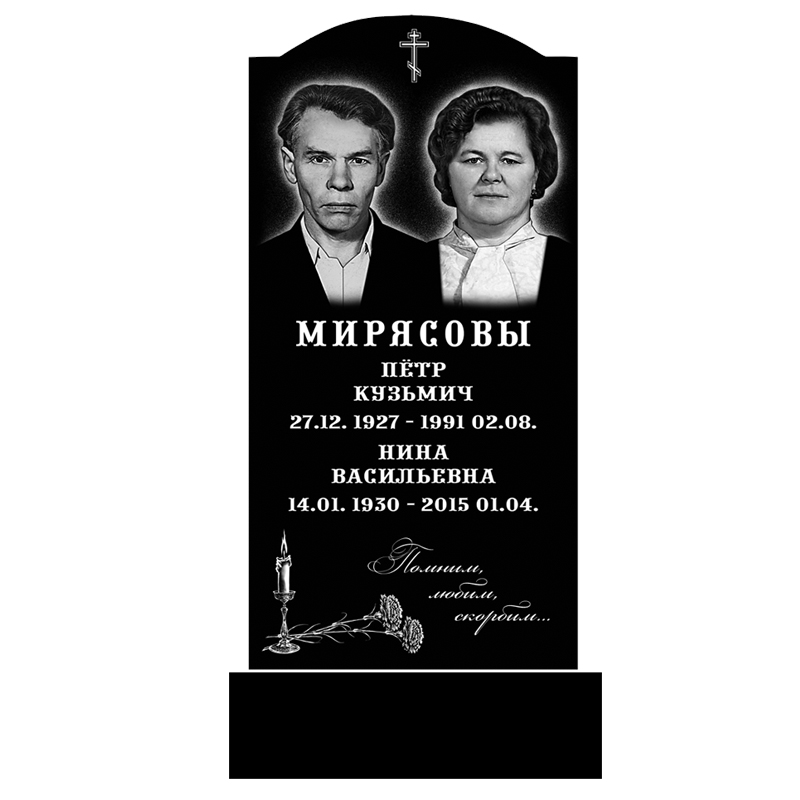 В цену входит: стела, подставка, цветник, портрет метрики, крест, цветы, эпитафия до 30 знаков.