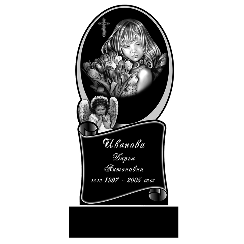 В цену входит: стела, подставка, цветник, портрет метрики, крест, цветы, эпитафия до 30 знаков.