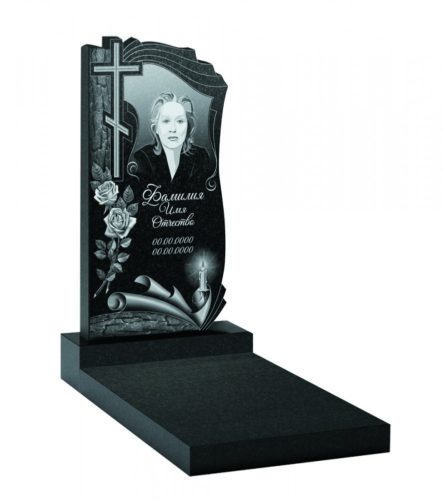 В цену входит: стела, подставка, цветник, портрет метрики, крест, цветы, эпитафия до 30 знаков.