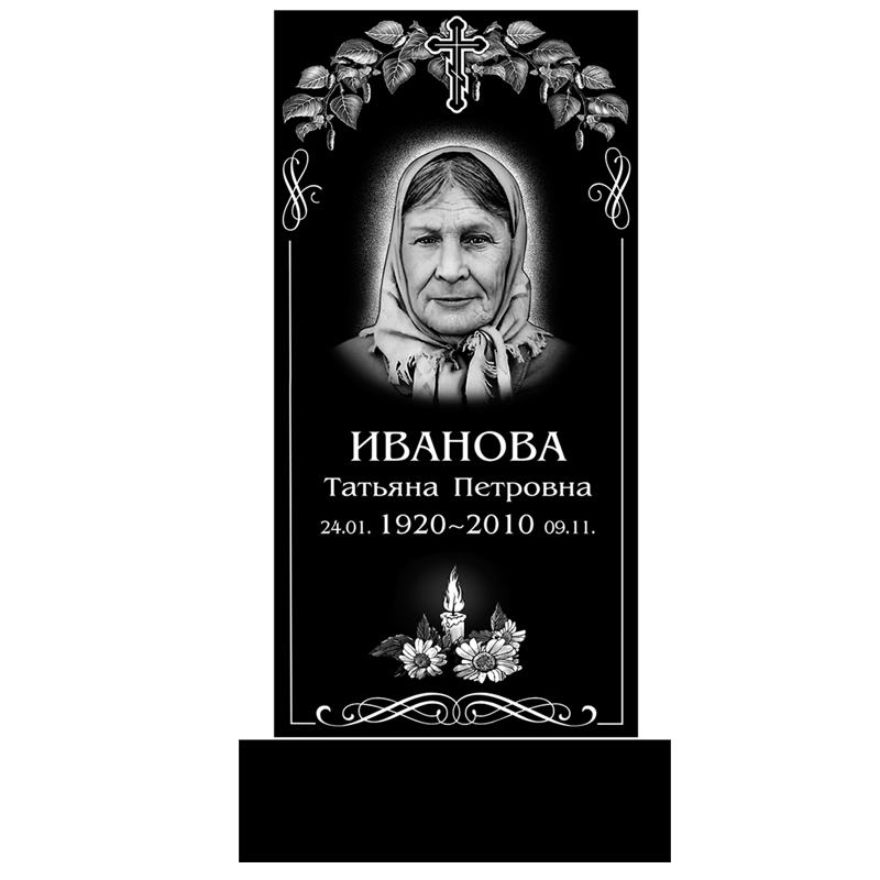 В цену входит: стела, подставка, цветник, портрет метрики, крест, цветы, эпитафия до 30 знаков.